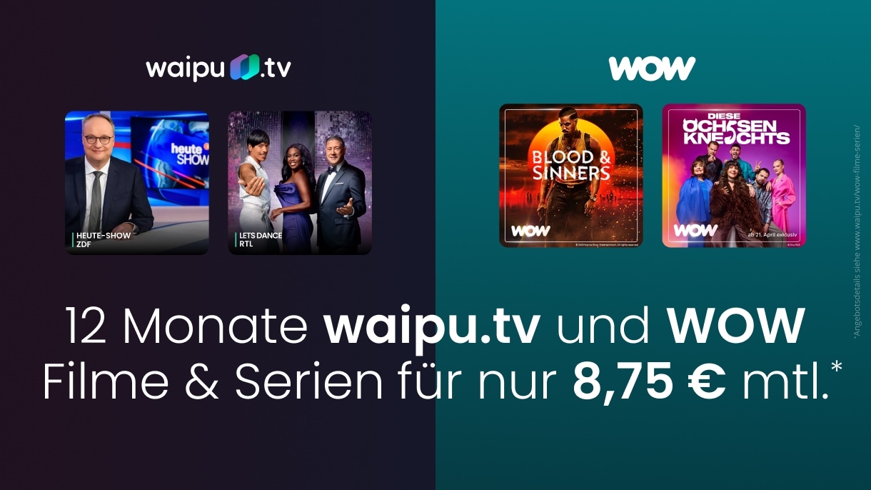 Die Aktion läuft ab dem 2. April um 10:00 Uhr nur für kurze Zeit und ausschließlich unter https://www.waipu.tv/wow-filme-serien/.